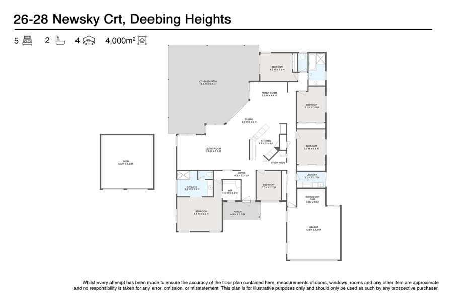 I love this layout and check the floorplan where the great sized main bedroom suite is privately located well away from the other 4 bedrooms that are also tucked away from the living areas. A study nook is also found near the kid's bedrooms so you can at least watch over their shoulder and see what they are supposedly studying on the computer screen, or if you want more of a dedicated home office/study then the bedroom closest to the front entry foyer and kitchen space would tick that box.