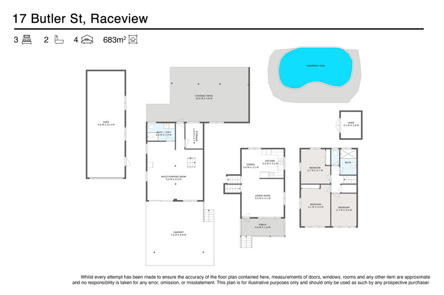 Found within a tucked away and sleepy cul de sac street in Raceview, this flood free and elevated 683m2 fenced rear yard position has upon it a large split-level home with an approx 12m x 4m powered shed (Not 6m as I accidentally mentioned in my video!) as well as a super soaking inground pebblecrete salt water pool!