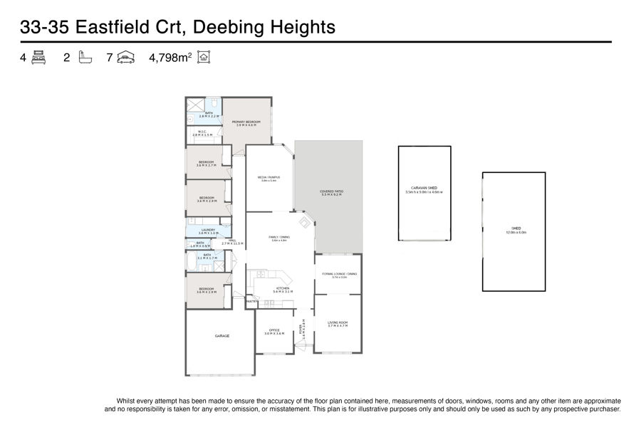 Arrive home to this mostly level, large fully fenced block and decide on which of the 2 sealed driveways to utilise. 1 leads to the high clearance Caravan/Boat/Truck shed that measures approx 9m long x 4.6m wide x 3.540m high with a roller door at both ends...or the powered 4 bay shed (Approx 12m x 6m) with remote control garage door openers on 2 of the 3 garage doors. A garden shed and rainwater tank with pump plumbed to a tap at the 4 bay shed and another at the large covered insulpanel roof flyover pergola so you can spray all the free cloud juice as much as you like.