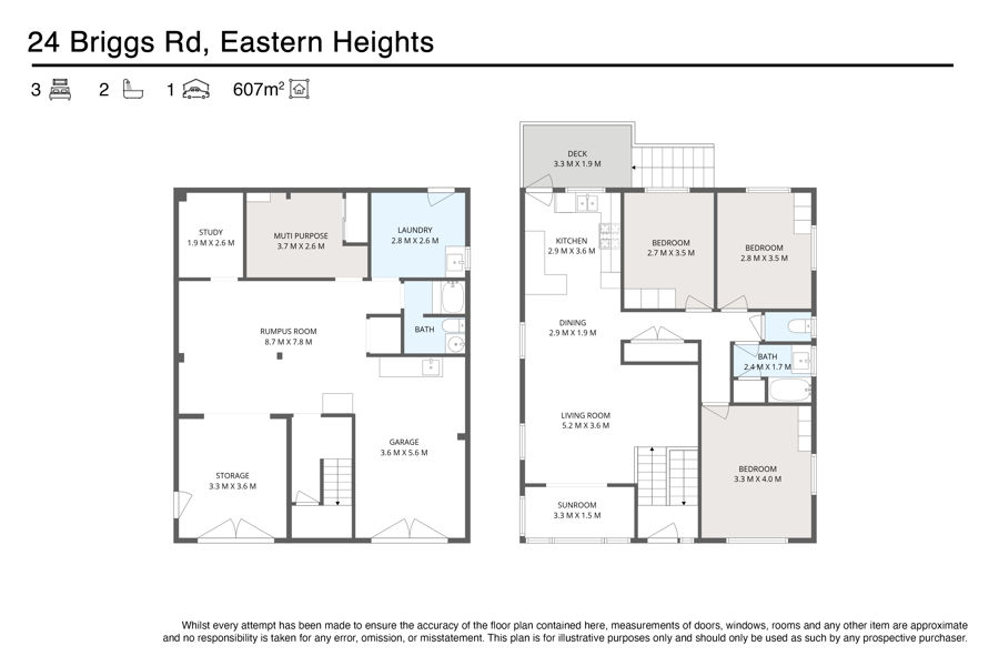 Timber flooring is found throughout most of the upper level and is where you will find an open design and air conditioned kitchen/dining/lounge area that opens into an enclosed sunroom at the front of the home and a covered rear deck that delivers views over the neighbouring suburb and a distant picturesque scene of the Goolman Ranges at Peak Crossing. This covered deck area also has external stairs that lead to the separate laundry and rear yard as well as a storage area beneath it for the pushies or extra toys/equipment.